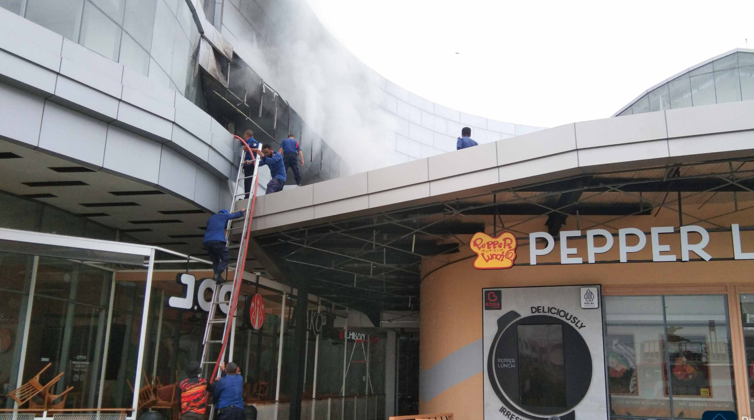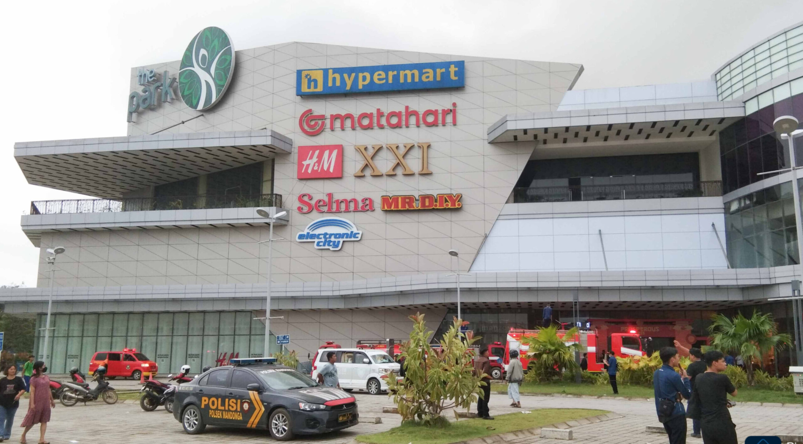 Menurut seorang warga yang berada di lokasi kejadian, api awalnya tampak besar mengahuskan bangunan lantai dua The Park.
