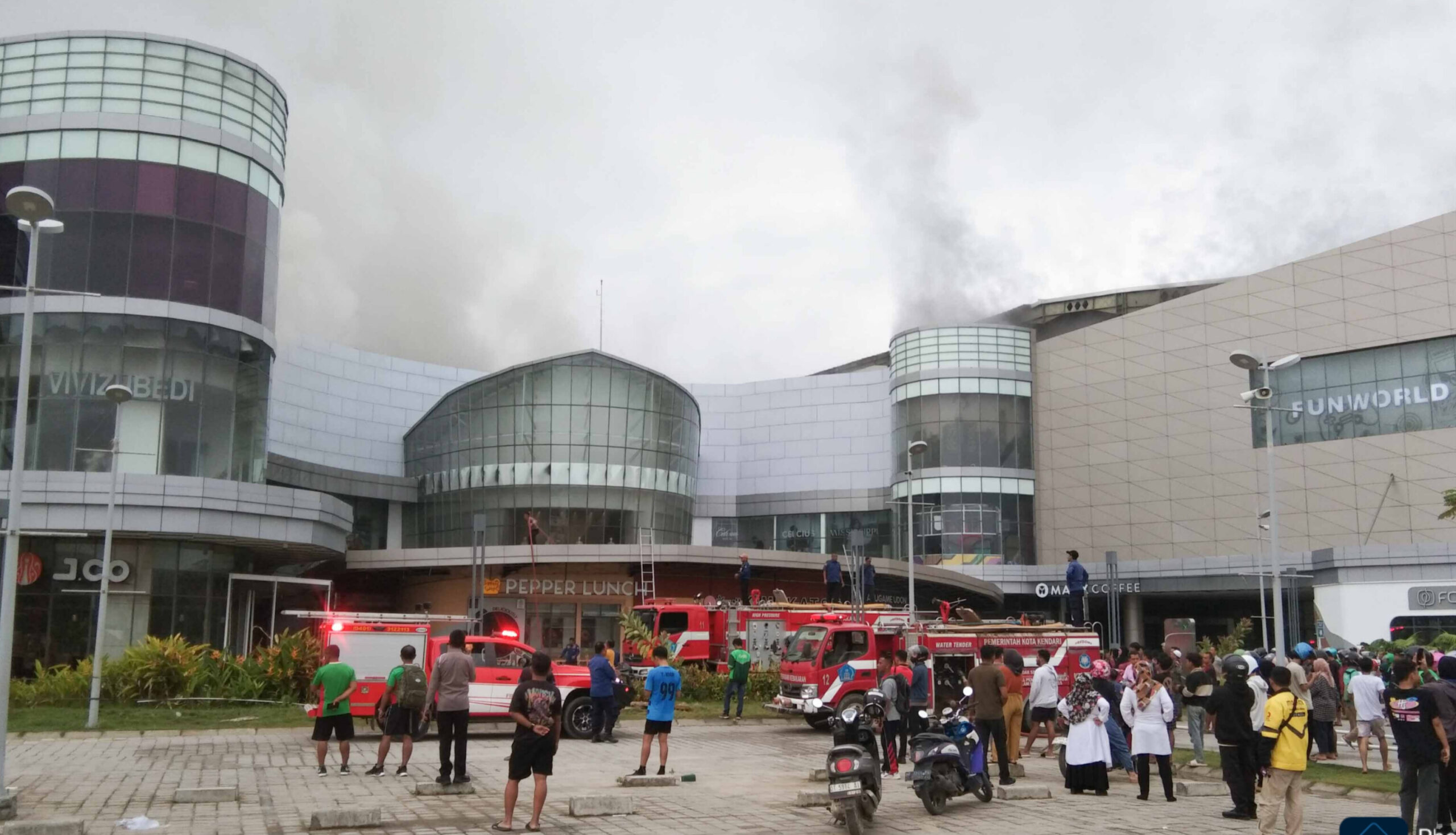 Kepulan asap tebal di lantai 3 The Park Kendari. Foto: Aisa/Lontara.