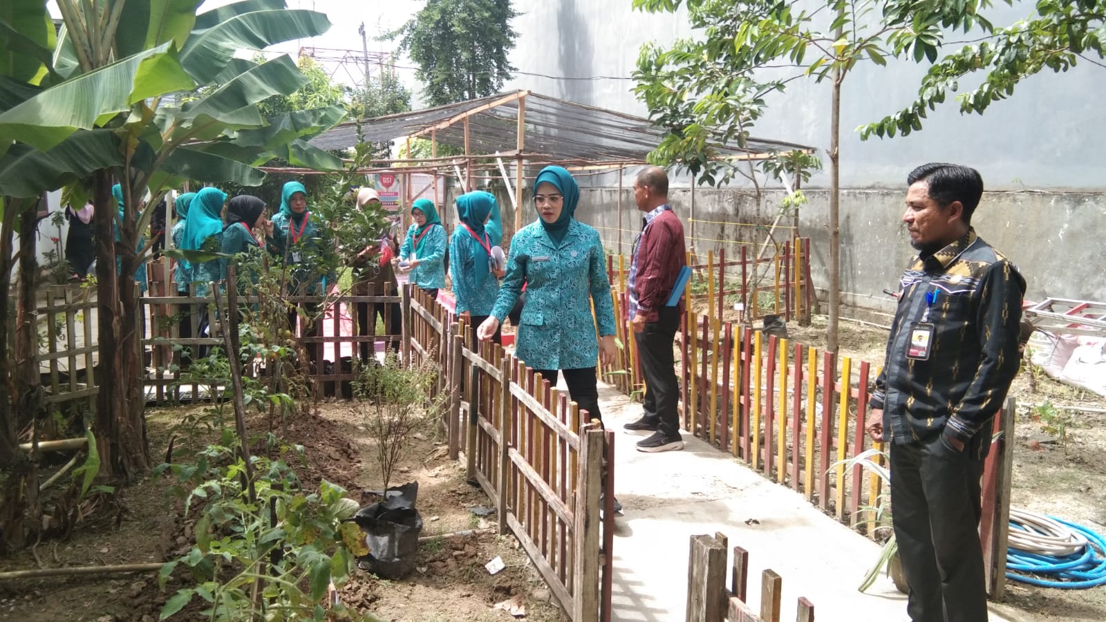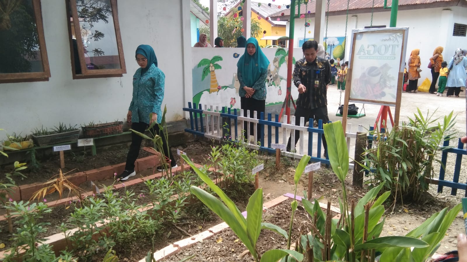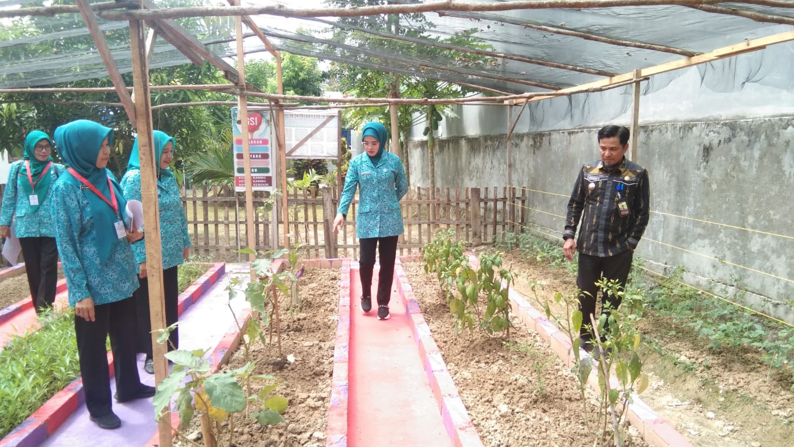Ketua TP PKK Kota Kendari, Shintya Putri Anawula Sudirman meninjau kebun toga. Foto: Lontara.