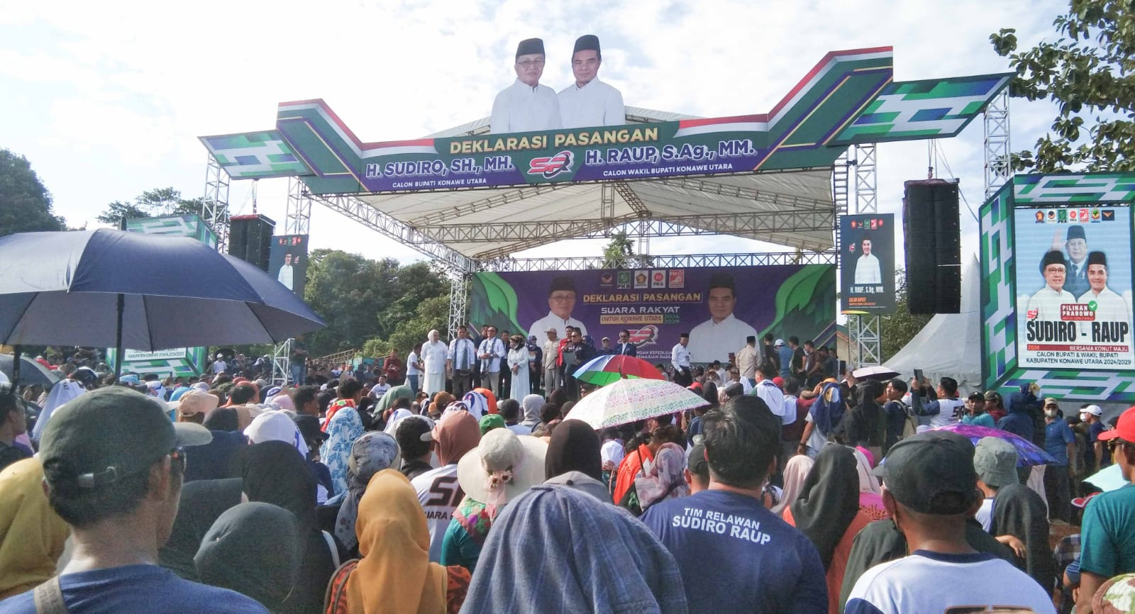 KONUT, LONTARASULTRA.COM – Ribuan orang membanjiri acara deklarasi bakal pasangan calon (bapaslon) Bupati Konawe Utara, Sudiro-Raup di Wanggudu, Kamis (29/8/2024) sore.
