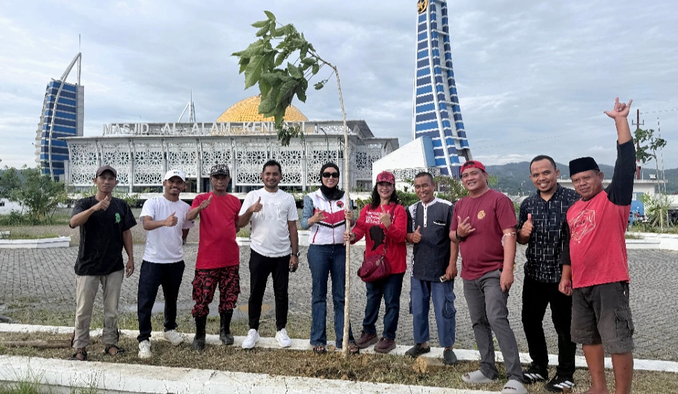 Usai Aksi Bersih-bersih, PDI Perjuangan Kota Kendari Tanam Tabebuya di Masjid Al-Alam